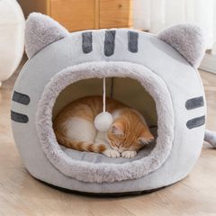 猫ハウス 猫 犬 ベッド キャットハウス ペットベッド 冬 寒さ対策 洗える 猫用こたつ 猫小屋 猫の家 犬小屋 あったかグッズ 室内用 ペット ペット用品 猫あったかグッズ (グレー, M-40*40*32cm)