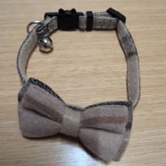 猫用ベージュ蝶ネクタイ首輪