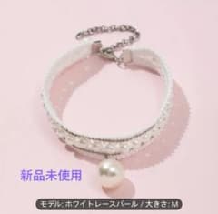 新品 未使用 ホワイトレースパール Mサイズ 猫用 首輪