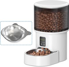 CozyMoew 自動給餌器 猫 タイマー式 4L ペット 自動餌やり機 餌入れ 定時定量 1日6食 ステンレス製ボウル 2WAY給電 水洗い可能 内蔵式防湿ユニット 手動給餌 お手入れ簡単