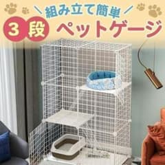 【新品】3段 ペットケージ にゃんモック付き 猫ゲージ キャットケージ 組み立て
