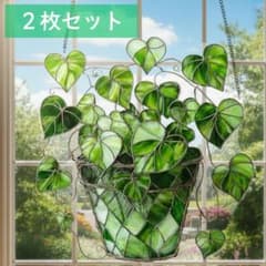 【お部屋の癒し】アクリルサンキャッチャーハートの葉観葉植物壁飾りステンドグラス風