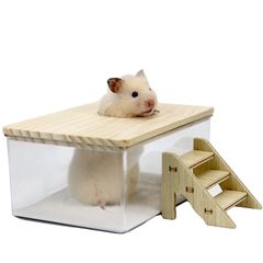 新品 ハムスターの砂浴室 ハムスター トイレ 透明なアクリルの砂浴室 小動物用シャワールーム 木製カバー付き 多機能 お風呂 洗面所 脱臭 掃除しやすい 飛び散り防止 ハリネズミ リス ハムスター モルモット 小動物のための明確なアクリルの洗面所の皿の浴室 (