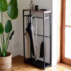【新着商品】山善(YAMAZEN) 傘立て (傘かけ) 玄関 スリム 幅50×奥行20×高さ103cm S字フック3個 2段 バーの奥行が変えられる(3段階) 組立品 ダークブラウン/マットブラック RUS-50(DBR3/MBK)