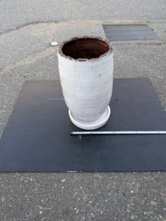 C-5 昭和レトロ 陶器製 傘立て 花柄 浮彫り 和モダン シリンダー型 リーフ
