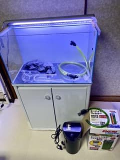 <在庫処分> 1000C 水槽セット 白色 PVCキャビネット付き レイアウト済み モニター付き(返品返金できない) bu1