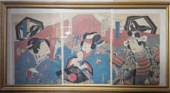 守川周重 浮世絵木版画 役者絵 三枚続き 豊原国周門下 明治期 額装