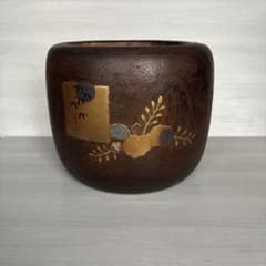 古道具 木製 小さめ火鉢 蒔絵 古民具 くり抜き 骨董品 レトロ アンティーク