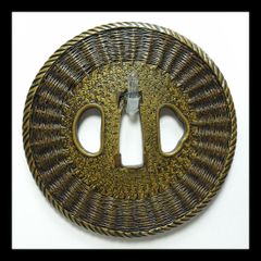★所載品同手 真鍮地丸形信玄鐔 「東京国立博物館図版目録・鐔篇」 直径8.44cm 真鍮置金に真鍮線組み合せ 真鍮縄目覆輪 桐箱入 【鐔71】 SDA