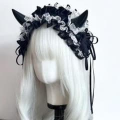 メイド ロリータ ヘッドドレス 小悪魔 ゴスロリ カチューシャ 黒 白
