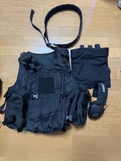 タクティカルベスト ブラック ヘッドセット付き