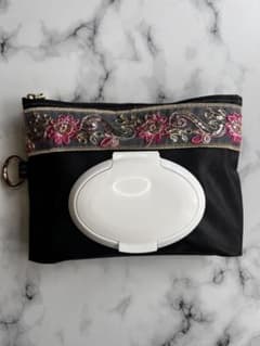 ウエットティッシュケース おしり拭きケース ハンドメイド インド刺繍リボン