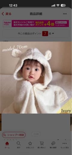 アイボリー フード付き ベビータオル