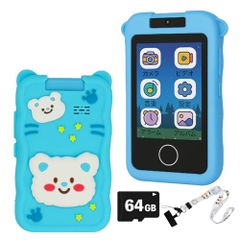 キッズスマホ おもちゃ 子ども用 知育 ゲーム タッチパネル 充電式 SDカード(64GB)付 カメラ付 動画撮影 音楽再生 録音 録画 英語学習 お絵かき アラーム タイマー 電卓 ストラップ付 かわいい 軽量 キッズ携帯 ギフト 誕生日 クリスマス 入☆彡