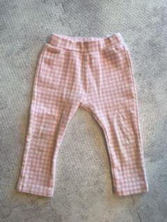ピンク チェック柄 ベビーレギンス 80cm