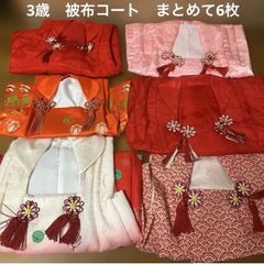 和装 子供用 被布コート 赤×花飾り 身丈49cm(991)