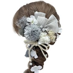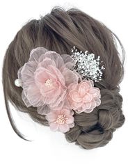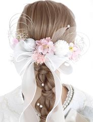 数量限定 振袖 和装 着物 袴 卒業式 浴衣に 七五三 結婚式 成人式 和玉 水引き かすみ草 髪飾り リーフ パール 専用ケース付き リボン ピンク YS002