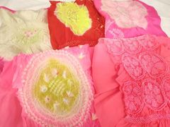 ヴィンテージ 赤とピンクと白の花柄兵児帯 正絹 子供用