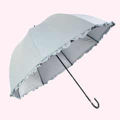 UVカット フリル付 紫外線遮蔽率97% 生地表シルバーコーティング UPF50+60cm かわいいドーム型 日傘 手開き傘 晴雨兼用 日光を遮断! (サックス) オカモト原宿店