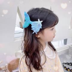マーメイド 人魚姫 キラキラ 大きめ ヘアクリップ キッズ 女の子 水色