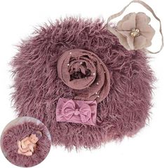 Sweet Plus 撮影用 ブランケット 赤ちゃん 新生児 写真 マット 毛布 ヘアバンド おくるみ カチューシャ ベビーシーツ ニューボーンフォト (小豆 4点, 70x60cm)