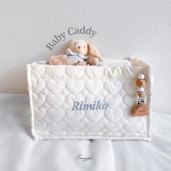 《名入れ刺繍46色》Baby Caddy /おむつストッカー 小物入れ 出産祝い 収納 出産準備 インテリア お名前刺繍 オムツストッカー オムツ収納 おもちゃ収納 ギフト キルティング ハート