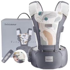 【ベビーアムール】Bebamour 抱っこひも ヒップシート 軽量 通気メッシュ ベビーキャリア 前向き抱っこ おんぶ 6way ウェストキャリー 快適(グレー)KK