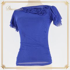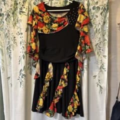 社交ダンス レッスン着 練習着 美品 フリル襟 総レース ペイズリー 花柄 M