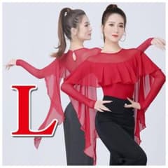 赤 バレエ フリル レオタード メッシュ 長袖 社交ダンス ラテン レッスン L