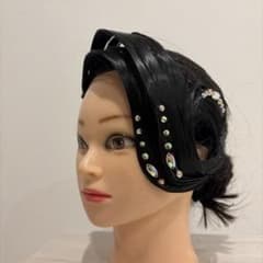 社交ダンス ウィッグ 黒髪 ストーン付き まとめ髪 簡単装着 発表会・競技会用