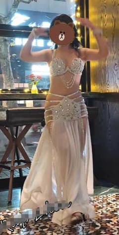 お得 美品一点物ベリーダンス衣装 ブラスカートセット M コスチューム ホワイト