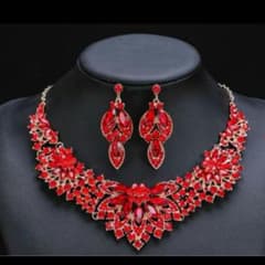 【ダンスに】花モチーフ ネックレス&イヤリングセット 赤 レッド 結婚式