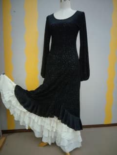 フラメンコ衣装 ファルダ マーメイド フリル付 L〜LL白黒 レッスン 練習着3