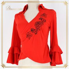 フラメンコ衣装 トップス 赤 レッド レース 花柄