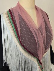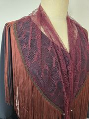 フラメンコ シージョ 赤 花柄レース 大判 フリンジ ダンス衣装 ヒップスカーフ