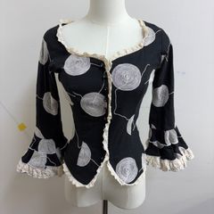 SHEIN ブラック フラワー刺繍 クロップドトップス M