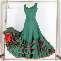 フラメンコ 衣装 ドレス ワンピース レッド系 グリーン系 緑 赤 ボランテ フリル 無地 ダンス パーティ 発表会 レトロ 可愛い ノースリーブ 舞台衣装 ダンス衣装 発表会用 フェミニン