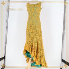 フラメンコ 衣装 VICTORIO&LUCCHINO ドレス ワンピース ブルー系 グリーン系 イエロー系 からし 青 緑 レース ボランテ フリル ダンス パーティ 発表会 かわいい 総レース 舞台衣装 ダンス衣装
