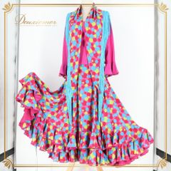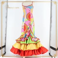 フラメンコ 衣装 ドレス ワンピース レッド系 ピンク系 ブルー系 グリーン系 イエロー系 オレンジ系 赤 黄色 オレンジ 青 水色 カラフル ボランテ フリル 柄 模様 パーティ 発表会 ボリューム ダンス衣装 ステージ衣装 舞台衣装 発表会衣装