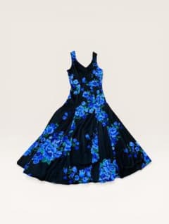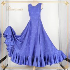 フラメンコ 衣装 Naomi Collection ナオミコレクション ワンピース ドレス ブルー系 青 花 花柄 ノースリーブ 袖なし ボランテ フリル 光沢 華やか ボリューム 上品 かわいい ダンス衣装 イベント ステージ 舞台 フラワー