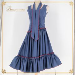 フラメンコ 衣装 ワンピース ドレス レッド系 ネイビー系 ブルー系 紺 赤 無地 ボウタイ 重ね着 ダンス パーティ 発表会 ノースリーブ ダンス衣装 発表会衣装 舞台衣装 演奏会衣装 パーティー衣装