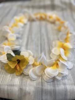 フラダンス用レイ 白と黄色 合成花 約50cm