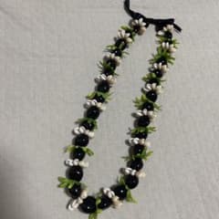 【新品未使用】ハワイアン レイ 造花 パープル&グリーン 南国 装飾 発表会