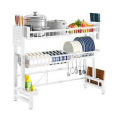 【特価商品】ADBIU 2025年版 シンク上水切りラック (拡張可能な寸法) スナップオンデザイン 2段 大型キッチンディッシュラック ステンレススチール カウンターの整理と収納