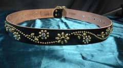 昭南ベンズレザーツタ&フラワースタッズベルトブラック