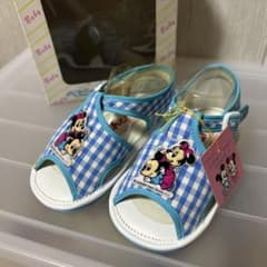 新品未使用 タグ付きミッキー ミニー ベビーサンダル ギンガムチェック