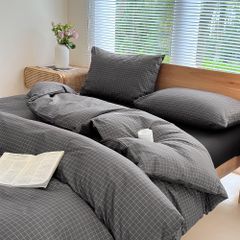 布団かばー ベットカバー 3点セット ベッド用 single シングル ダークグレー チェック柄 布団カバー 韓国 洋式・和式兼用 NSNLGSGC 洗い替え速乾タイプ 防ダニ