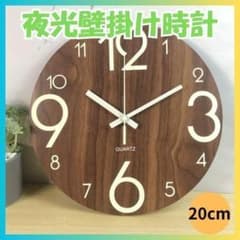 壁掛け時計 夜光 静音 軽量 蛍光 木製 ブラウン 茶色 木目 20cm 蓄光