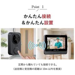 工事不要!かんたん接続カメラ付きコードレステレビドアホン 自動撮影、動画録画