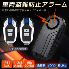 自転車 バイク 車 盗難防止 防犯 アラーム 大音量 ブザー 防水 振動 検知 セキュリティ センサー 配線不要 リモコン付き 電池付き 音量3段階 感度7段階 簡単設定